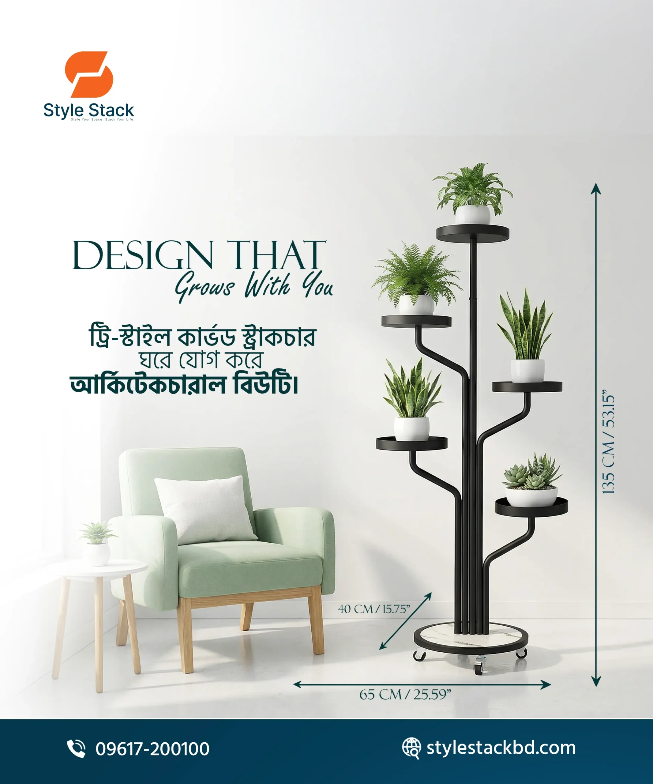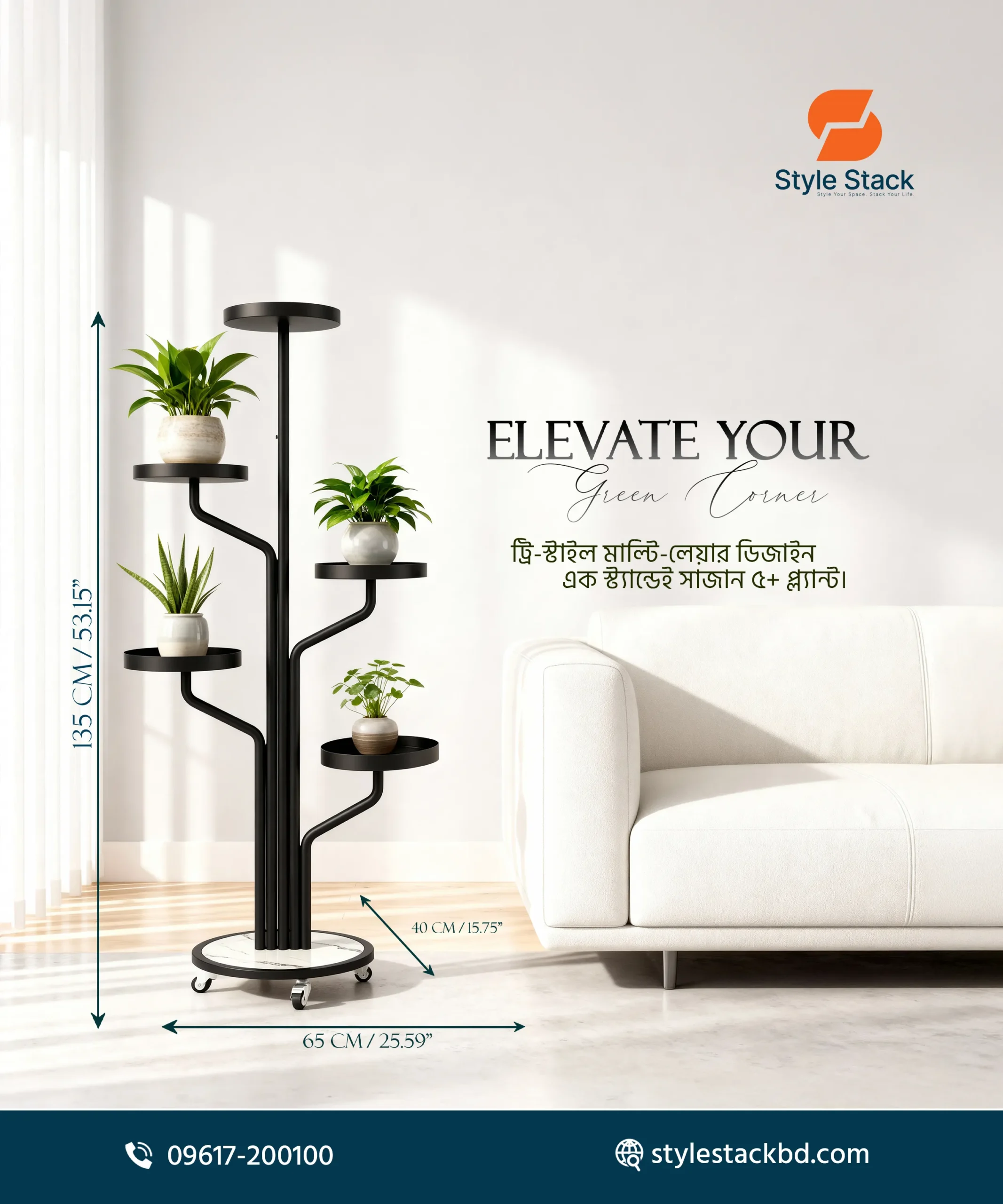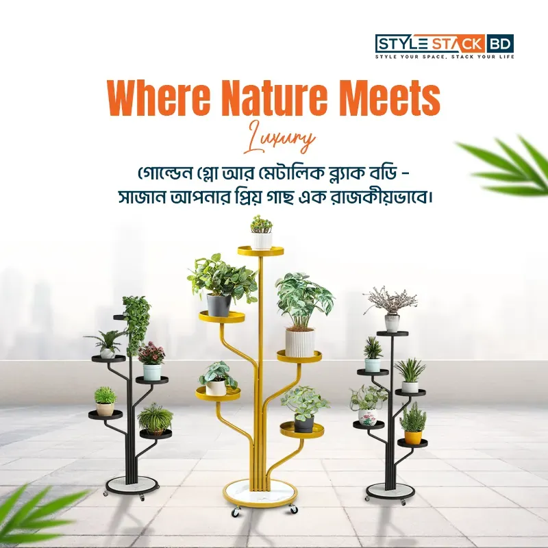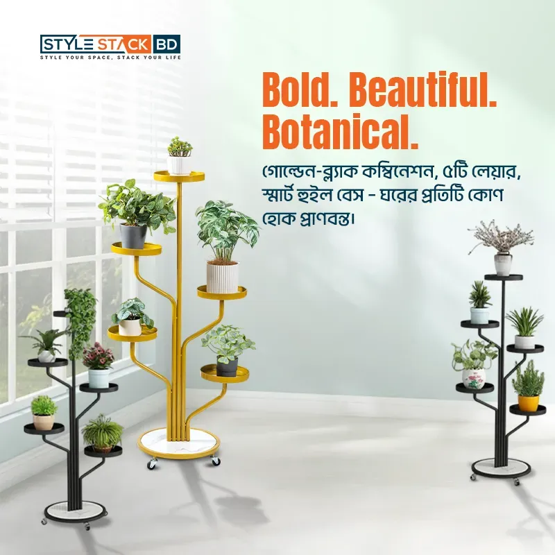 এই Tree Style Plant Stand আপনার ঘরের সৌন্দর্য বাড়ানোর পাশাপাশি গাছগুলোকে সুন্দরভাবে সাজিয়ে রাখার একটি আধুনিক সমাধান। মাল্টি-লেভেল ডিজাইনের কারণে আপনি একসাথে একাধিক গাছ স্টাইলিশভাবে ডিসপ্লে করতে পারবেন।