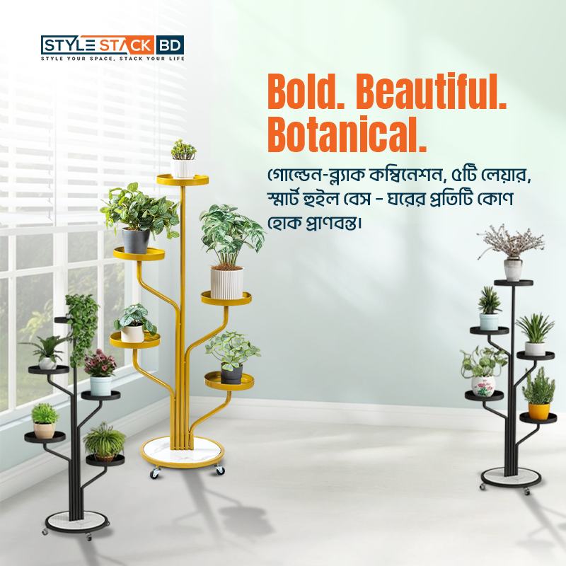 আপনার ইনডোর স্পেসে যদি প্রাকৃতিক ছোঁয়া আনতে চান, তবে এই Tree Design 5-Tier Plant Stand হতে পারে আপনার জন্য আদর্শ চয়েস। গাছের ডালের মতো স্টাইলিশ ডিজাইন, একাধিক স্তরে গাছ রাখার সুবিধা এবং সহজে স্থানান্তরের জন্য চাকা – সব মিলিয়ে এটি একটি ফাংশনাল এবং ডেকোরেটিভ আইটেম।