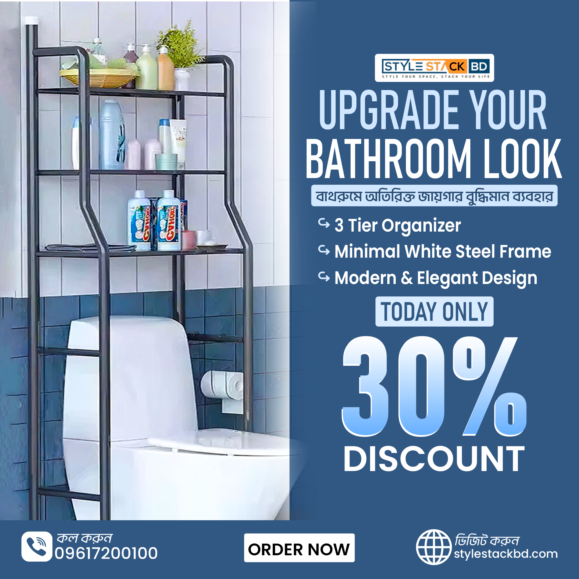 তাহলে এই Modern Over-The-Toilet Rack হতে পারে সবচেয়ে স্মার্ট সমাধান। টয়লেটের উপরের জায়গা সাধারণত অব্যবহৃত থাকে—আর ঠিক সেই স্পেসটিকেই ব্যবহারযোগ্য করে তোলে এই vertical storage rack।