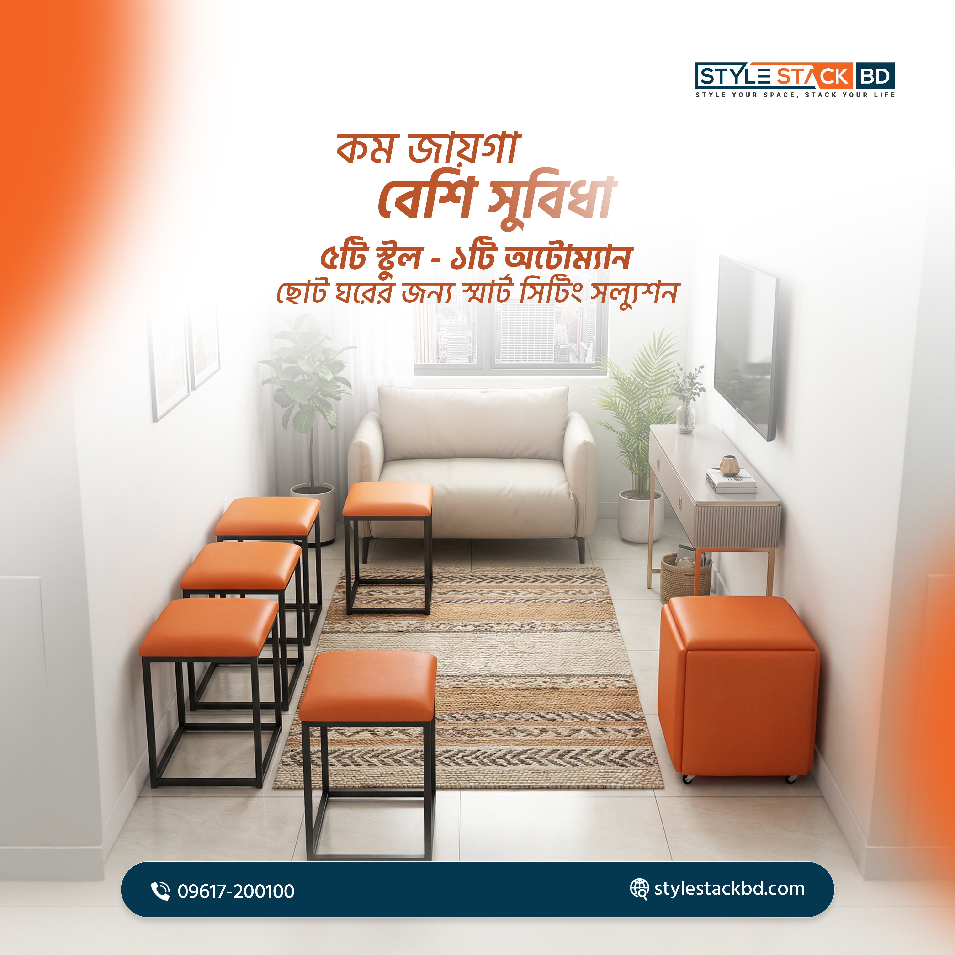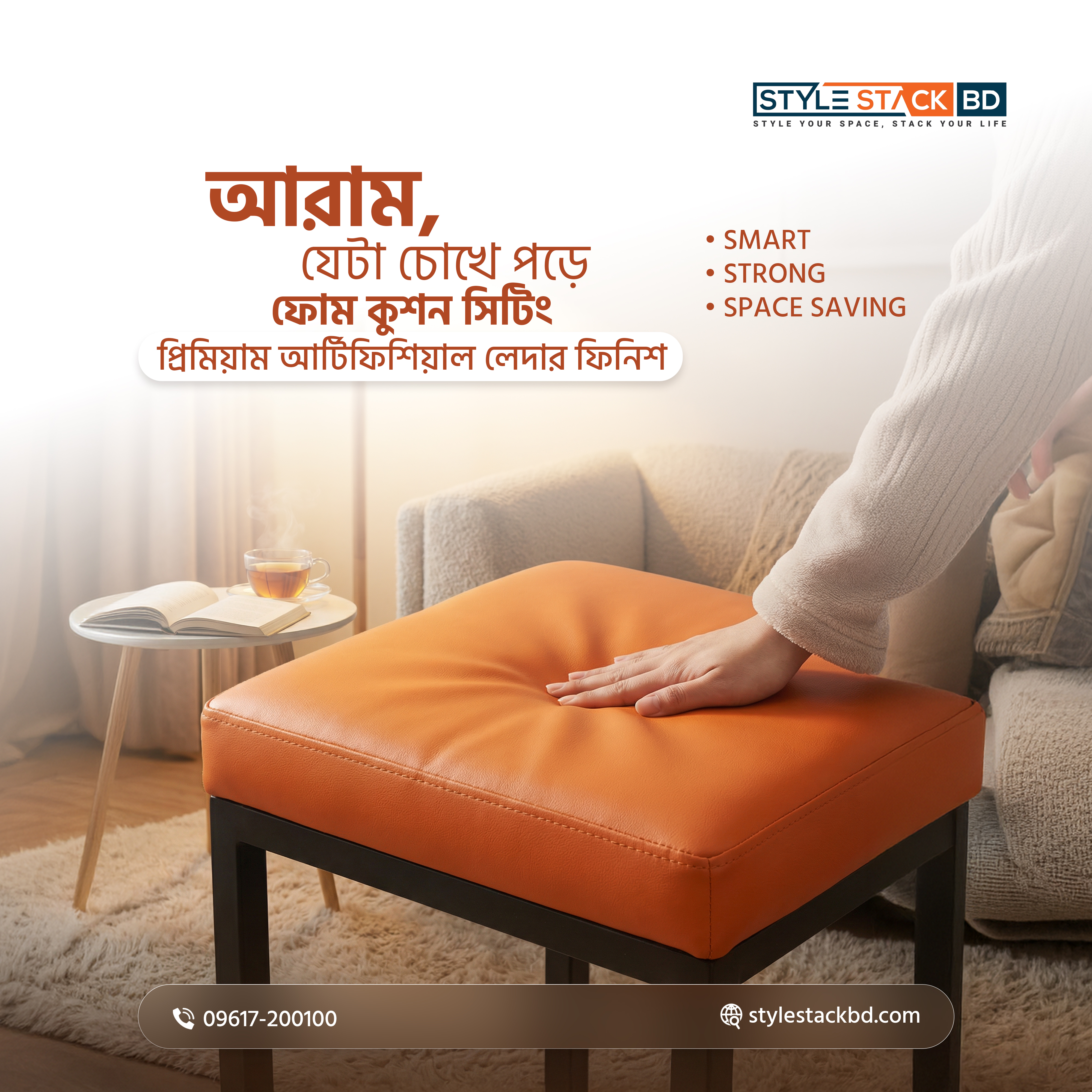 স্মার্ট 5-ইন-1 অটোম্যান কিউব, যা একসাথে স্টাইল, কমফোর্ট এবং ইউটিলিটি এনে দেয় আপনার লিভিং স্পেসে।